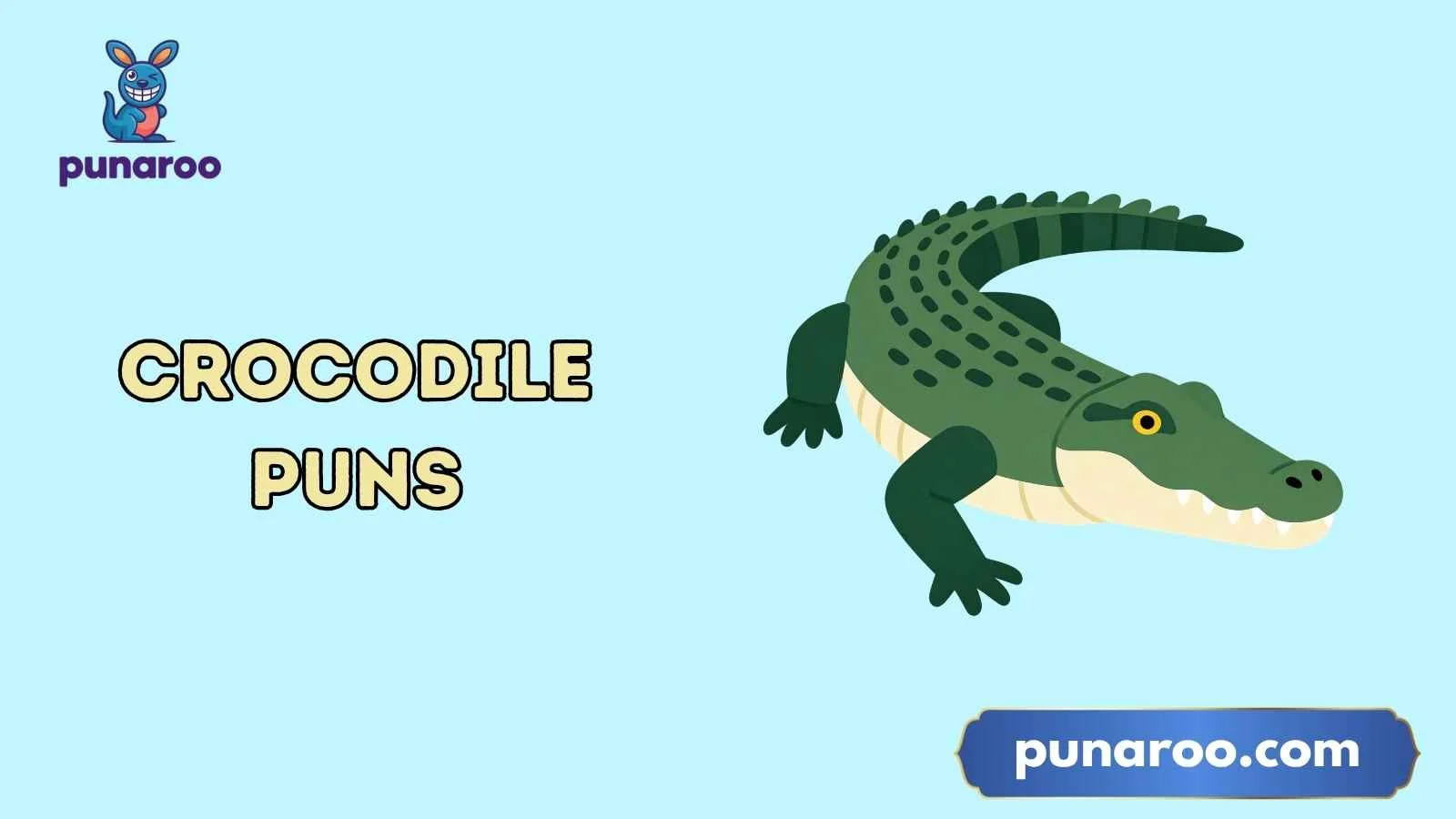 Crocodile puns are funny wordplays based on crocodiles, their behavior, or their features like snapping and teeth.